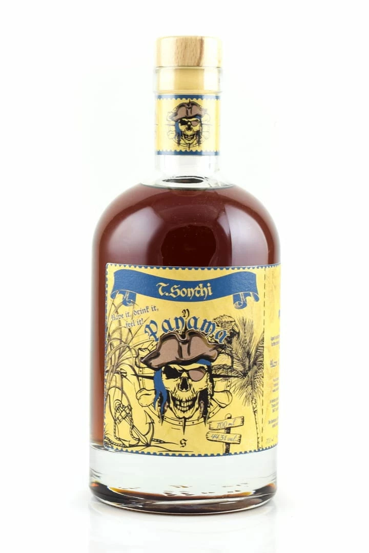 Der Panama 12 Jahre – T. Sonthi wird mit 44.3%vol. Alkoholgehalt abgefüllt und ist ein Spiced Rum (Spirituose auf Rum-Basis), da er mit 33g Zucker pro Liter Reinalkohol nachgesüßt und verfeinert wird.