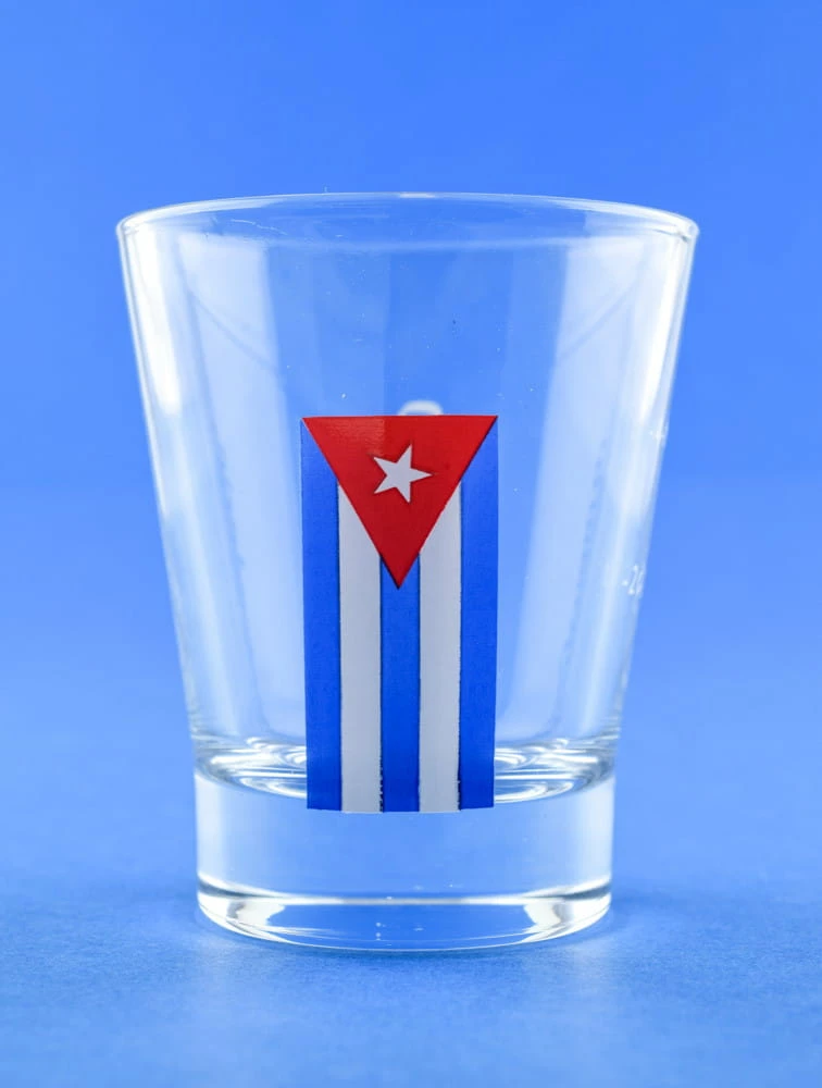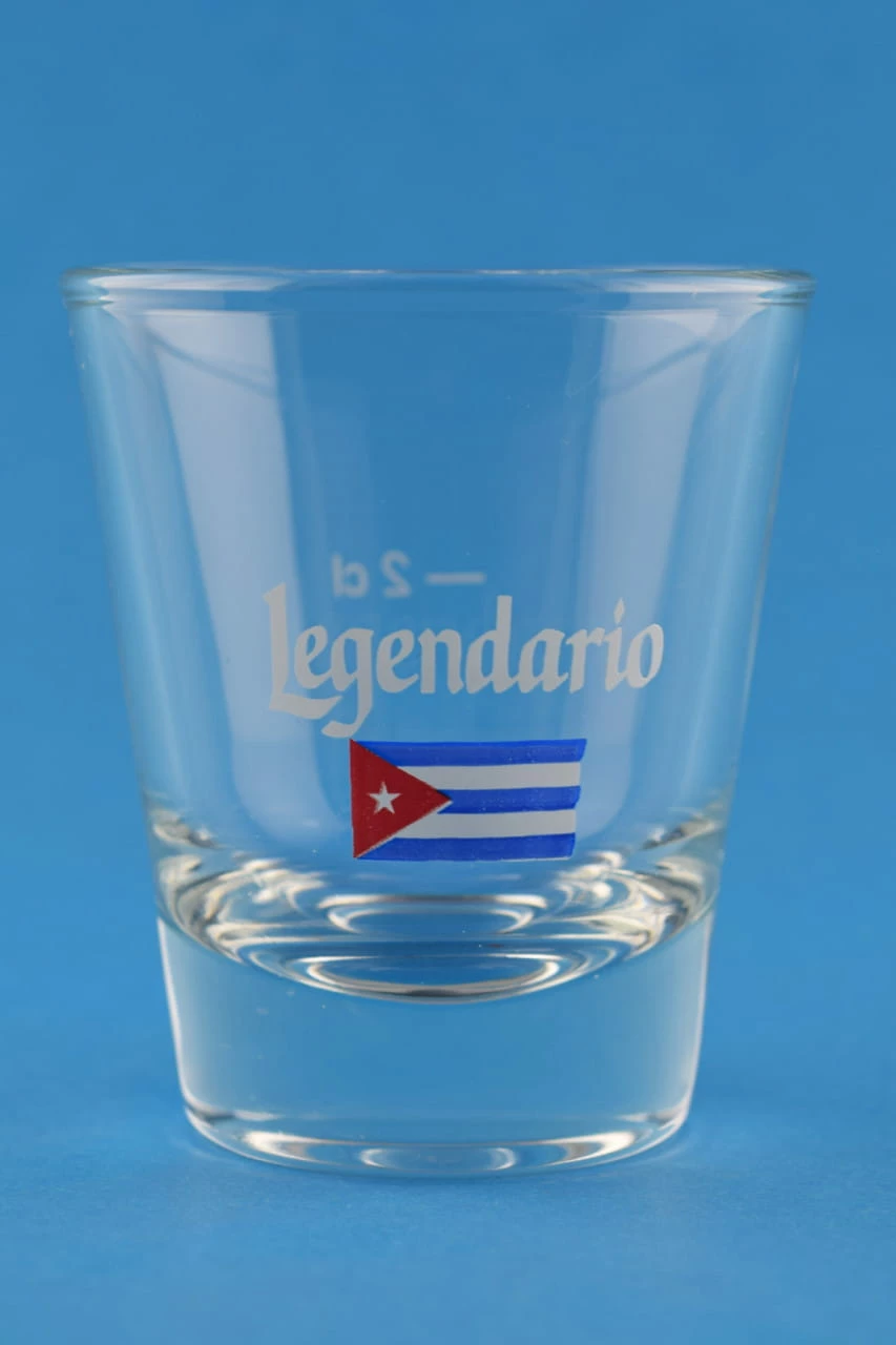 Auf der Vorderseite ist die kubanische Flagge abgebildet, auf der Rückseite der Schriftzug „Ron Legendario“.