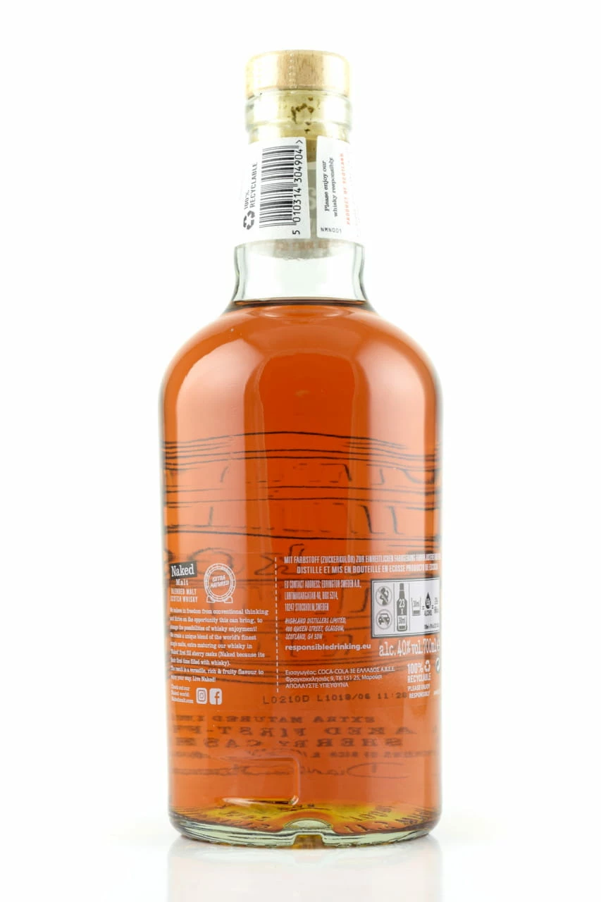 Für die Reifung dieses Blended Malt Whiskys wurden nur erstbefüllte ehemalige Oloroso-Sherryfässer verwendet – daher der Name „Naked“.